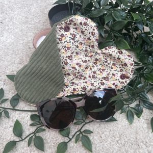 9,99 € Ajouter au panierEtui à lunettes en velours kaki (extérieur); Tissu coton motifs fleuris (intérieur).