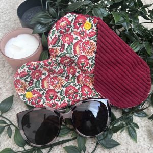9,99 € Ajouter au panierEtui à lunettes en velours bordeaux (extérieur); Tissu coton rouge à motifs fleuris (intérieur).