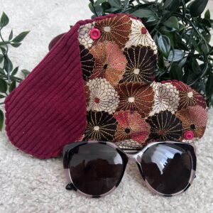 9,99 € Ajouter au panierEtui à lunettes en velours bordeaux (extérieur); Tissu jacquard à motifs fleuris (intérieur).