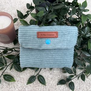9,99 € Ajouter au panierPorte-monnaie vert d’eau en velours (extérieur); Tissu coton à motifs originaux (intérieur).
