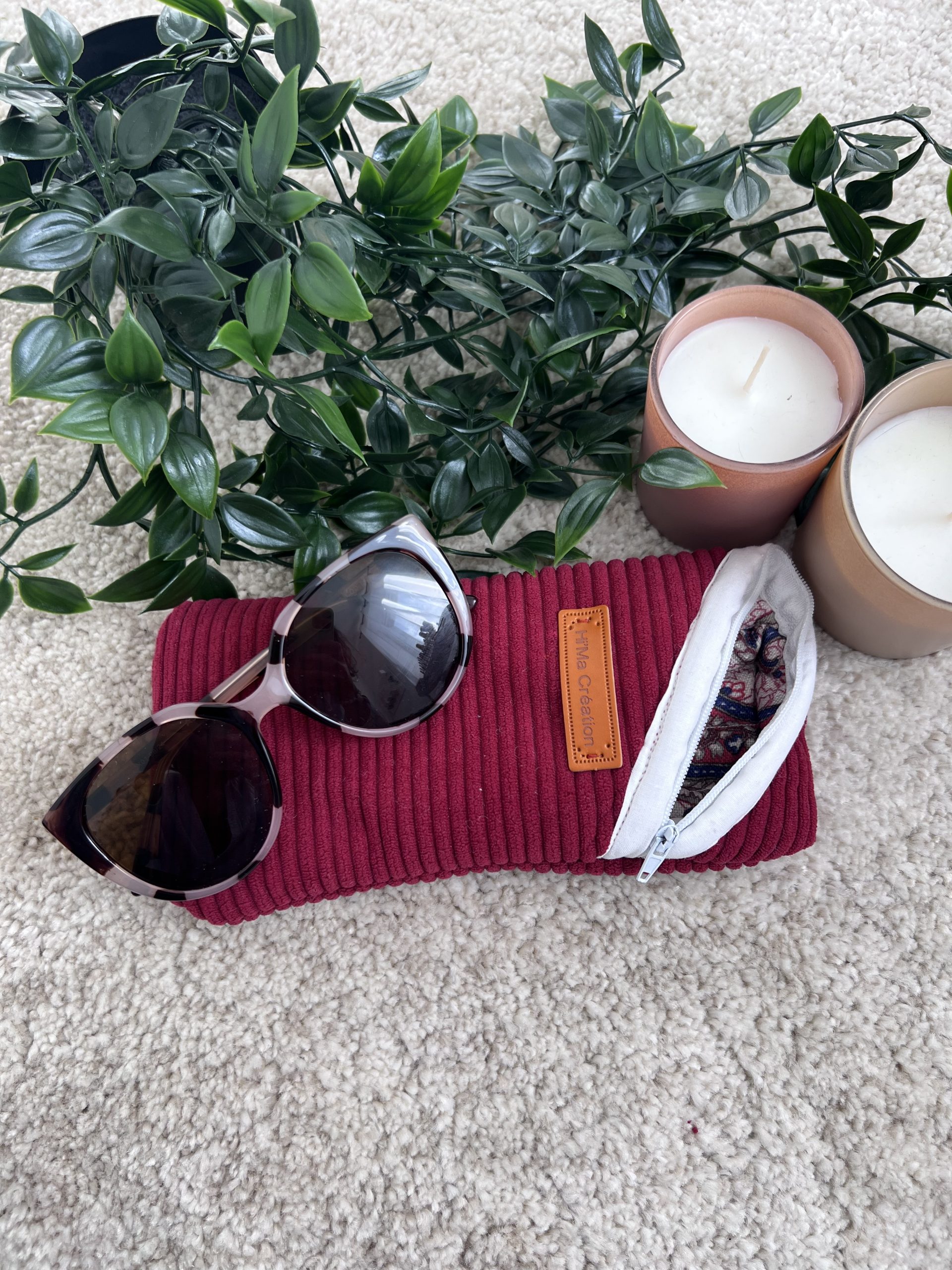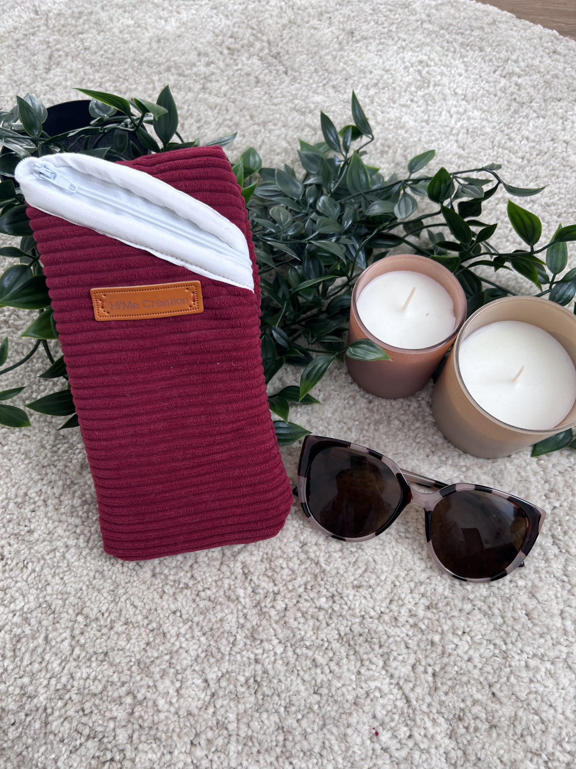 ✔ Velours bordeaux texturé : L’extérieur en velours à grosses mailles offre une sensation agréable au toucher et une esthétique chaleureuse et sophistiquée. ✔ Doublure matelassée et élégante : L’intérieur en coton et polyester matelassé, aux motifs raffinés bleu et bordeaux sur fond beige, protège vos lunettes avec douceur tout en ajoutant une note décorative. ✔ Fermeture blanche tout en légèreté : Pratique et épurée, elle s’intègre harmonieusement à l’ensemble en apportant une touche de clarté.