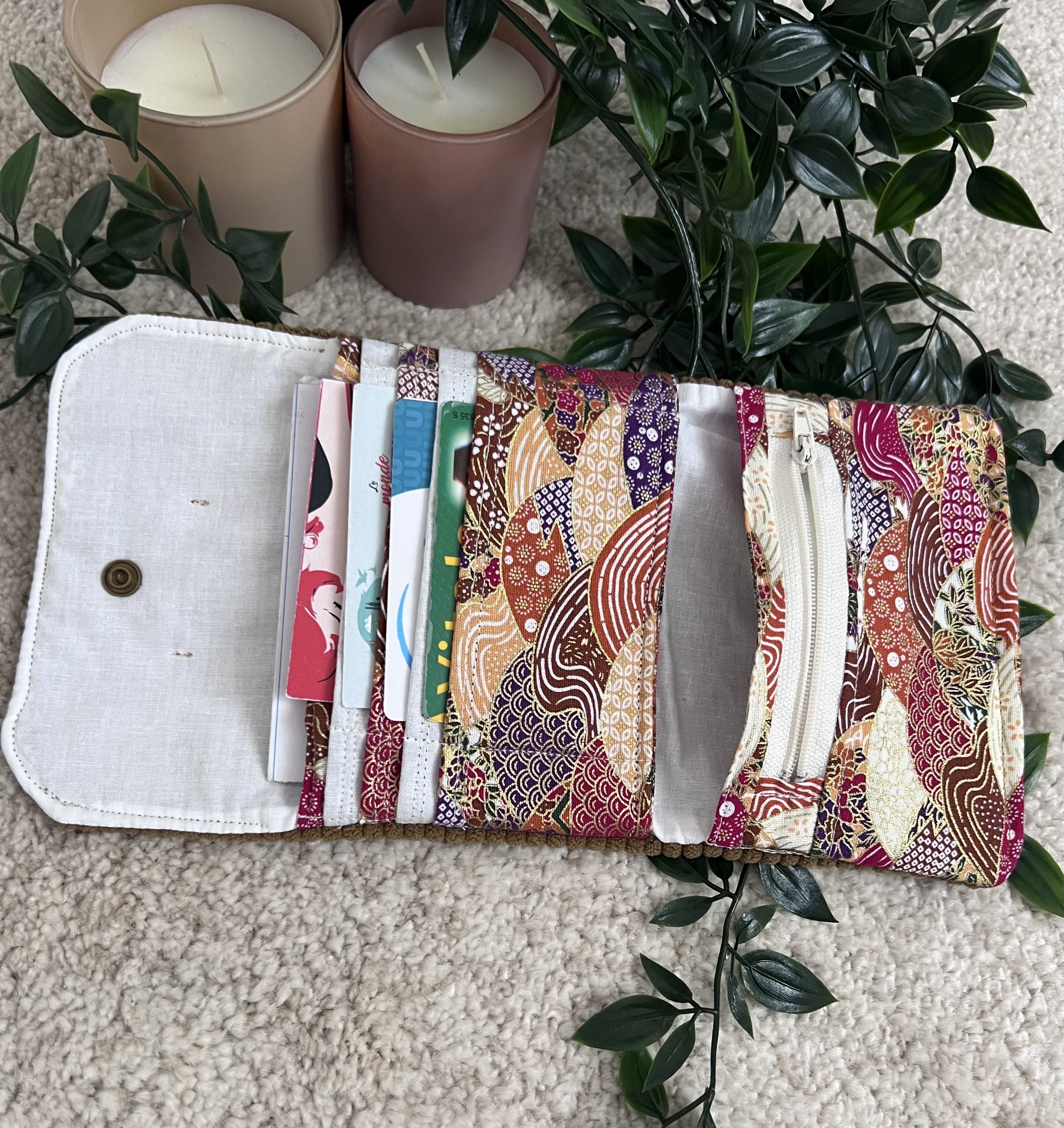 Laissez-vous séduire par l’élégance du velours tabac et l’éclat subtil de son intérieur pailleté. Un porte-monnaie fait main qui marie à merveille praticité et poésie.