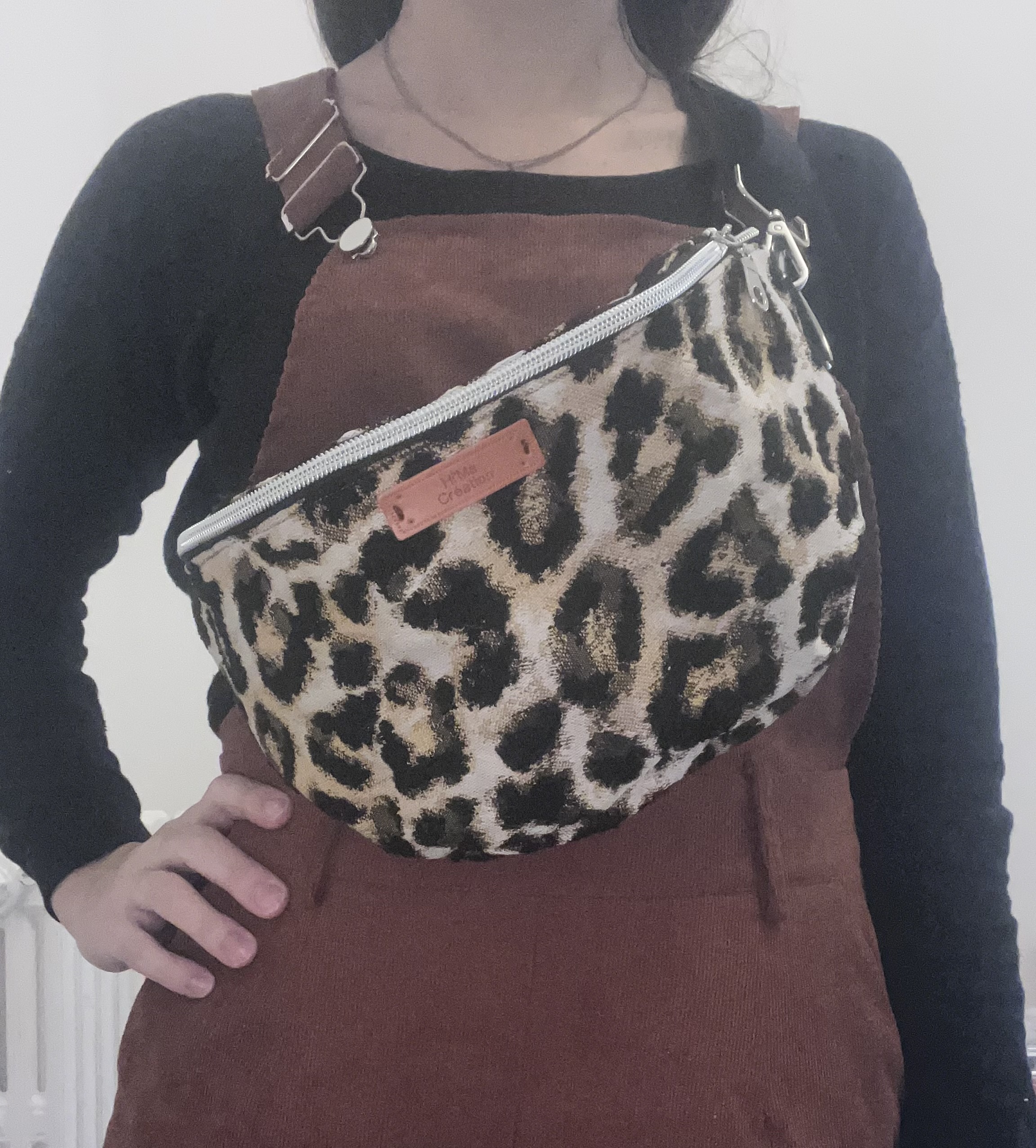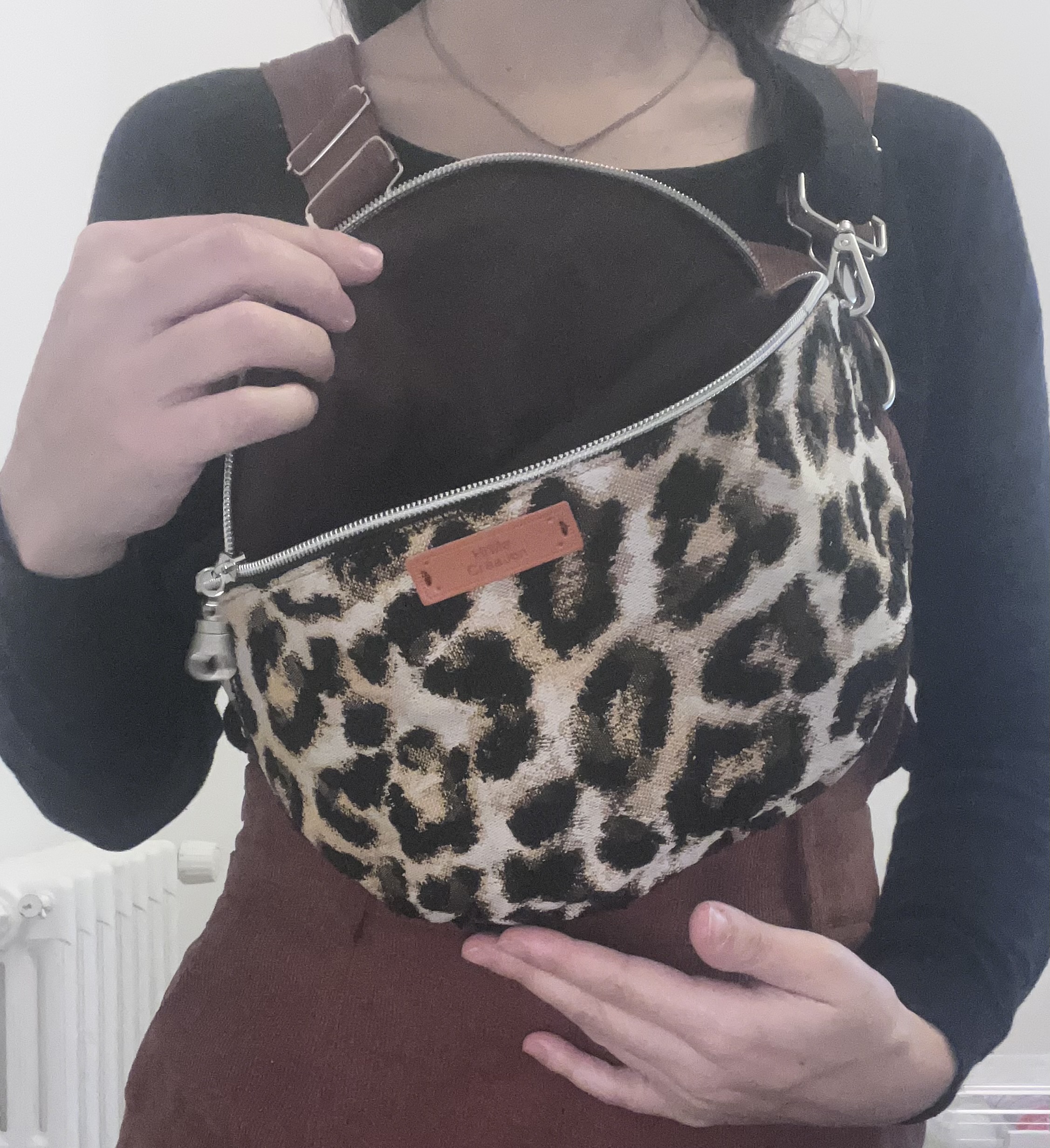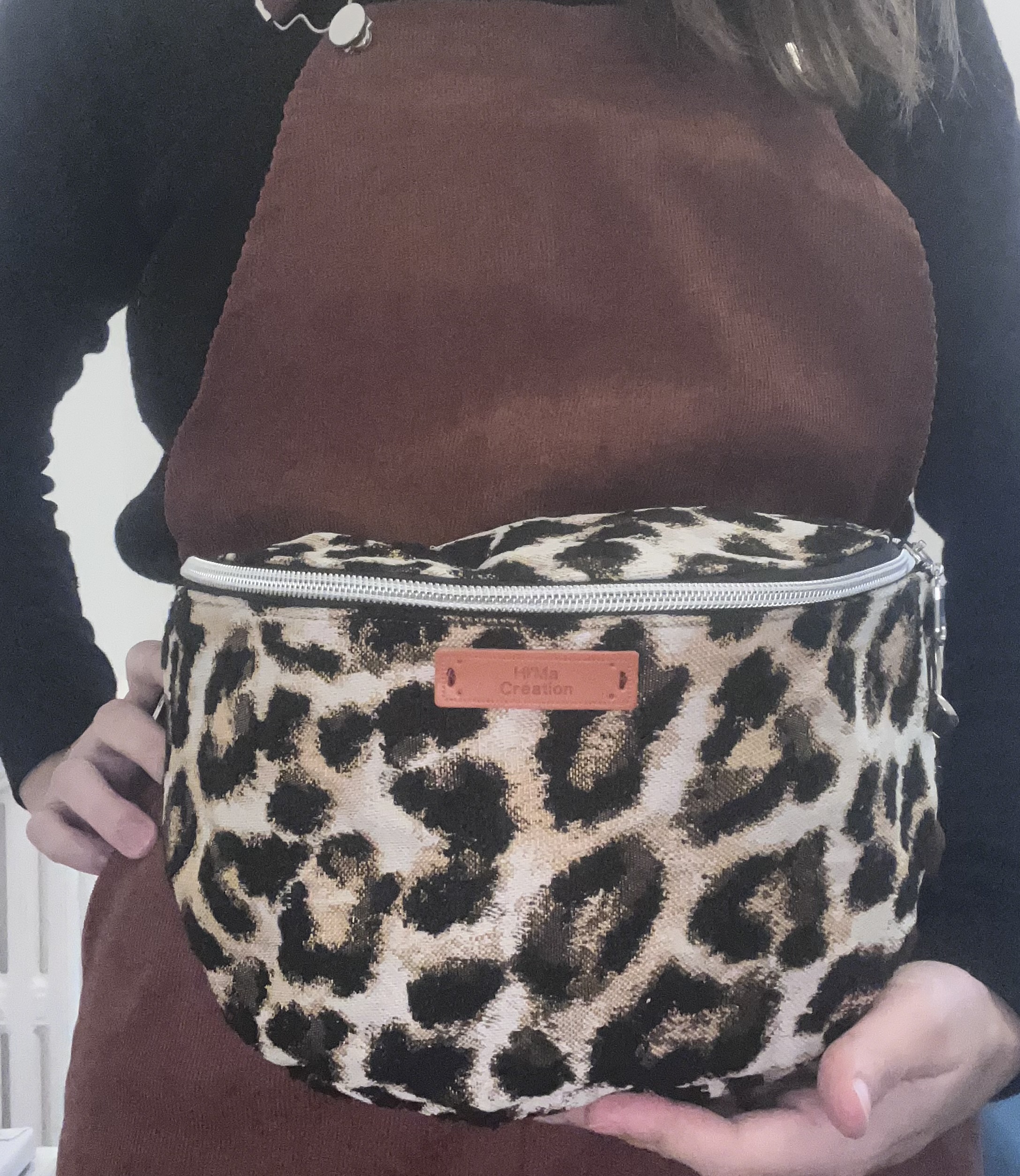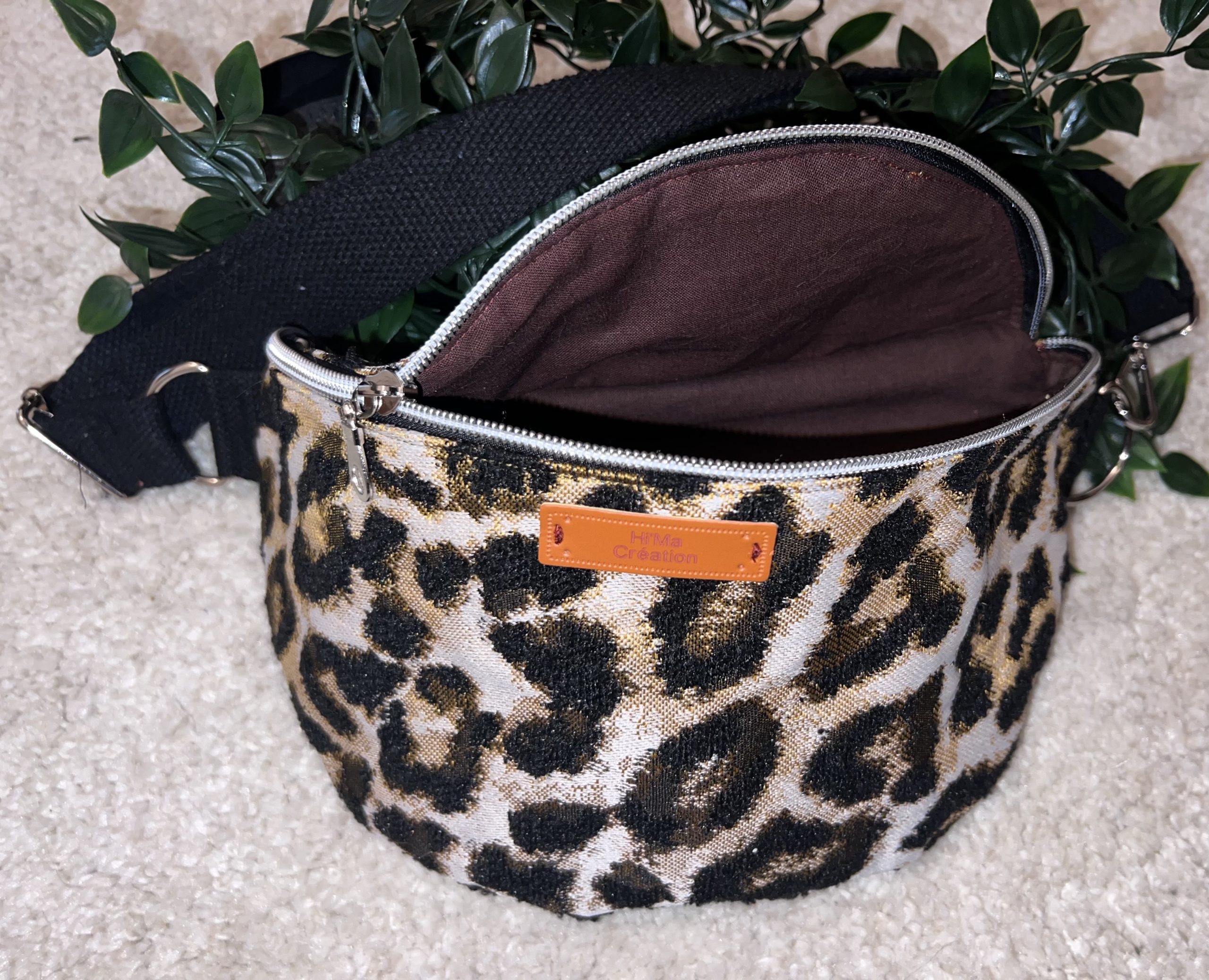 ✔ Matériaux : Un tissu jacquard léopard au motif raffiné, à la fois texturé et résistant, qui affirme un style fort tout en conservant une touche chic intemporelle. ✔ Finitions argentées : Une fermeture éclair noire sublimée de reflets argentés, pour un contraste élégant et une allure précieuse jusque dans les moindres détails. ✔ Sangle ajustable : Une sangle noire unie, sobre et moderne, pensée pour s’adapter à toutes les morphologies et à tous les styles. ✔ Doublure harmonieuse : Un intérieur en coton uni marron, doux et chaleureux, qui vient tempérer avec élégance le caractère affirmé du léopard.