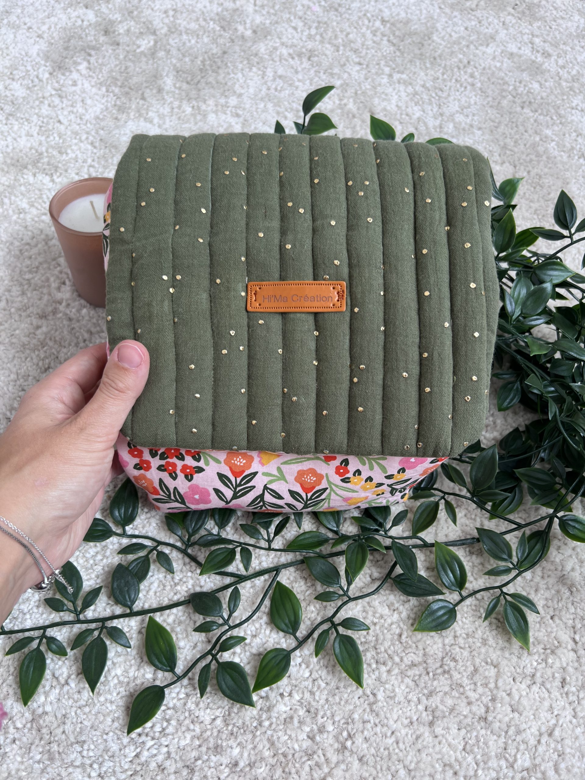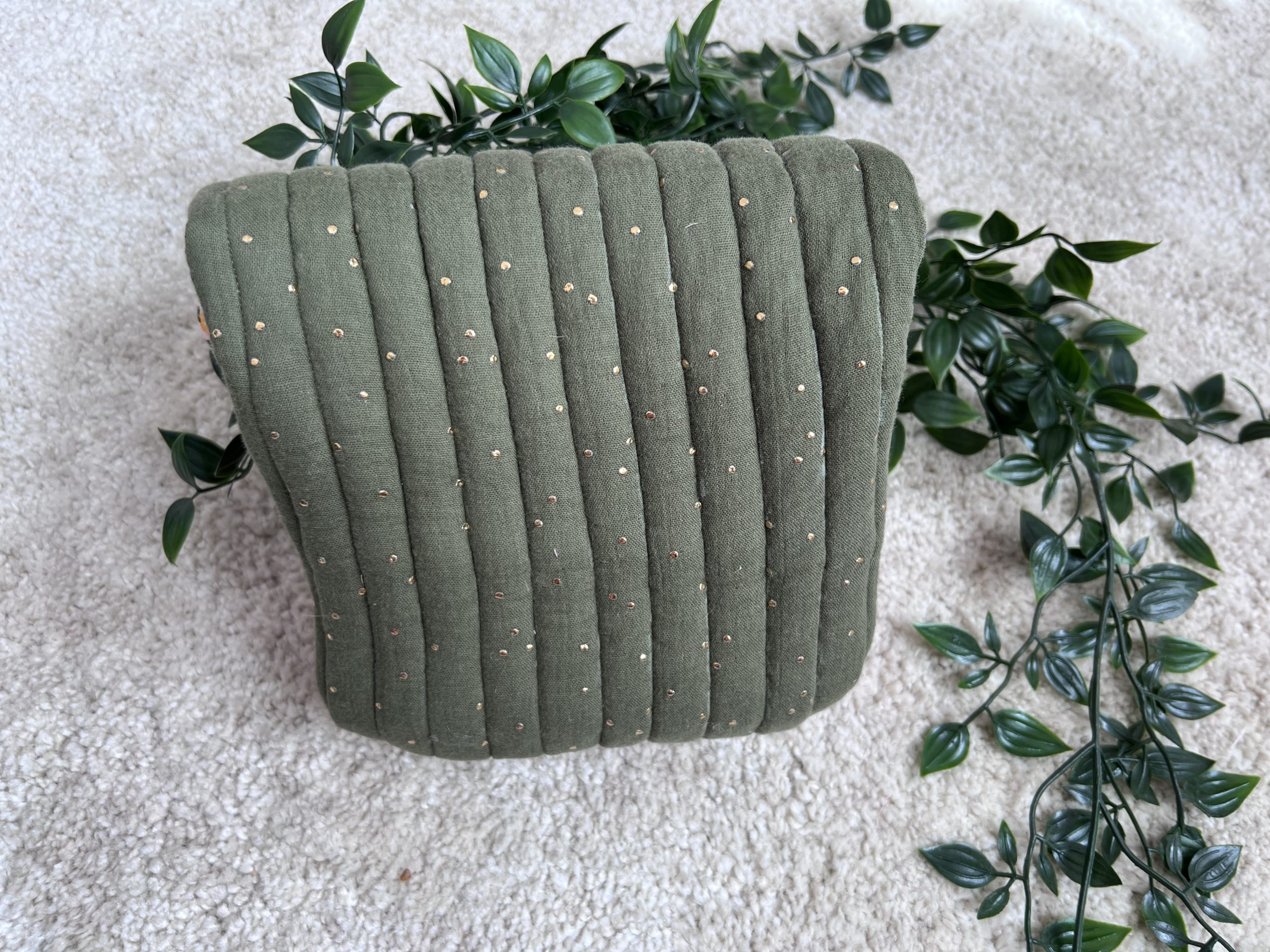 ✔ Tissu extérieur : une gaze de coton douce et moelleuse, rembourrée de mousse pour une tenue parfaite. Le rabat extérieur, en gaze vert kaki, est orné d’une délicate goutte dorée pour une touche chic et lumineuse.